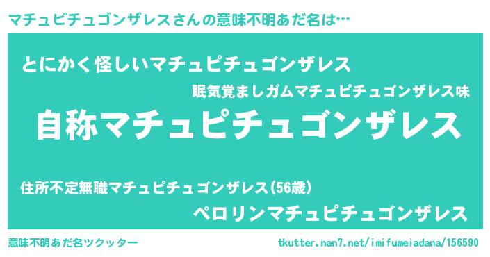 | 男性向けラノベタイトル風あだ名 | 『緋弾のマチュピチュゴンザレス』 |