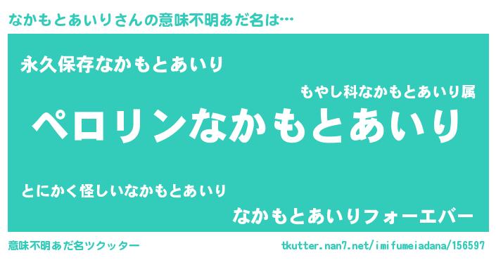 | ヘコむあだ名 | 『なかっふぃ~』『なかもとあいり(震え声)』 |