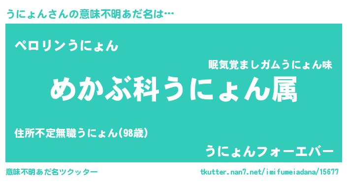 | 男性向けラノベタイトル風あだ名 | 『緋弾のウニョン』『ウニョンスレイヤー』 |