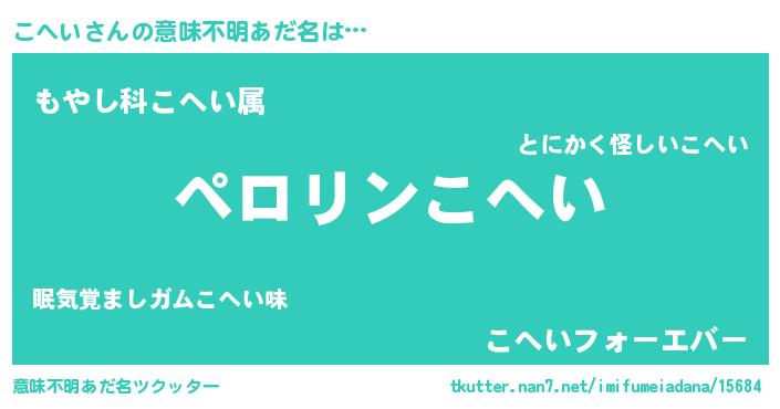 | ヒーロー風カッコイイあだ名 | 『スーパーコヘイ』『ウルトラこへいマン』 |