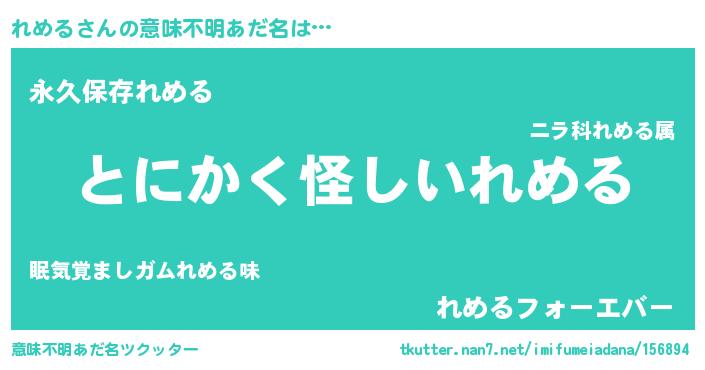 | 女子向けラノベタイトル風あだ名 | 『れめるの卵を拾いまして』 |
