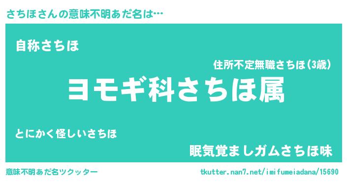 | 男性向けラノベタイトル風あだ名 | 『さちほ~年齢イコール彼女いない歴の魔法使い~』 |
