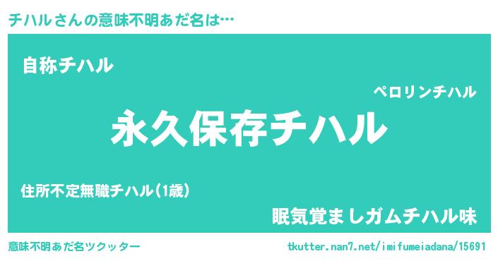| 男性向けラノベタイトル風あだ名 | 『チハルという概念が存在しない退屈な世界 』 |