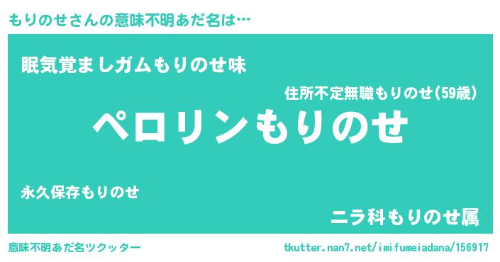 | 胡散臭い通販商品みたいなあだ名 | 『モテモテ間違いなし水晶球…その名も「もりのせ」』 |