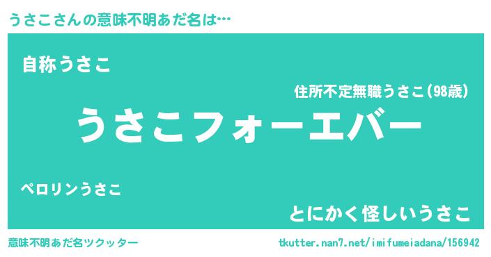 | ポケモン風あだ名 | 『ウサコダネ』『ウサセウス』 |