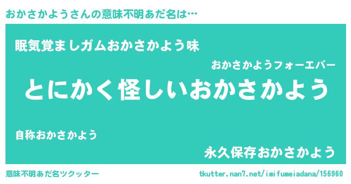 | 女子向けラノベタイトル風あだ名 | 『おかさかよう様がみてる』 |