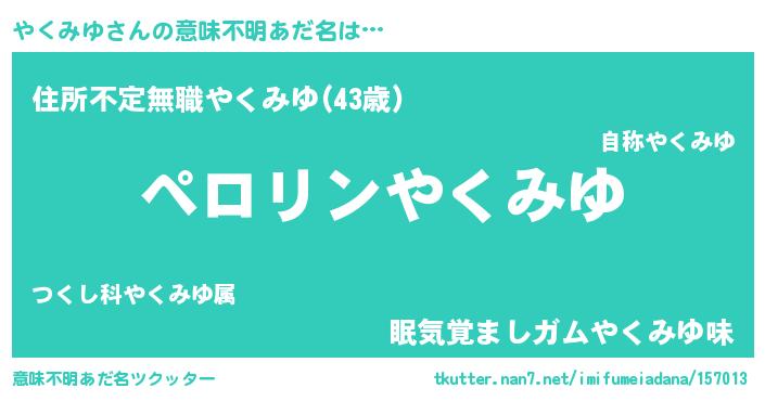 | 胡散臭い通販商品みたいなあだ名 | 『億万長者になれるブレスレット…その名も「やくみゆ」』 |