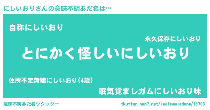 | ポケモン風あだ名 | 『ヒニシイオリ』『ニシセウス』 |