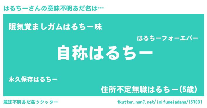 | 男性向けラノベタイトル風あだ名 | 『緋弾のハルチー』『魔弾の王とはるちー』 |