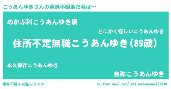 | ヒーロー風カッコイイあだ名 | 『仮面コウダー』『最強戦士コウアンユキ』 |