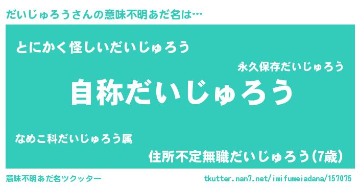 | 男性向けラノベタイトル風あだ名 | 『Re:だいじゅろうから始める異世界生活』 |