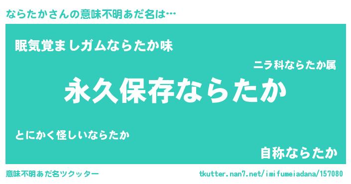 | ヘコむあだ名 | 『ならたか(笑)』『ならお』『豆乳』 |