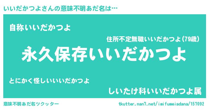 | 男性向けラノベタイトル風あだ名 | 『いいだかつよという概念が存在しない退屈な世界 』 |