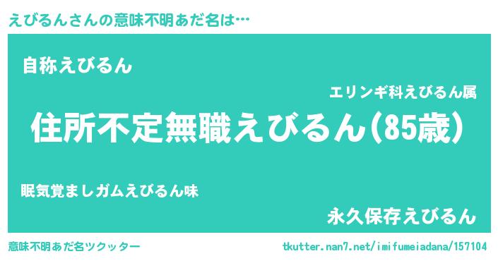 | 男性向けラノベタイトル風あだ名 | 『うちのえびるんが世界を掌握している!』 |