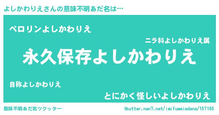 | 欧米人風あだ名 | 『ダルビッシュよしかわりえ』 |