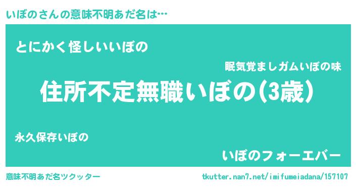 | ヘコむあだ名 | 『いぼお』『牛乳』『いぼの(苦笑)』 |
