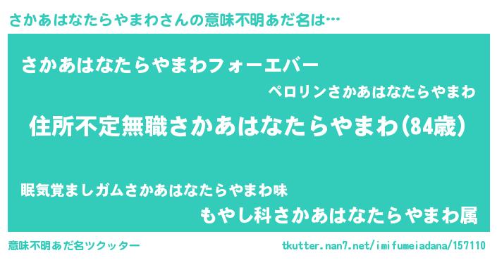 | 伝説のあだ名 | 『秘められし陰陽師さかあはなたらやまわ』 |