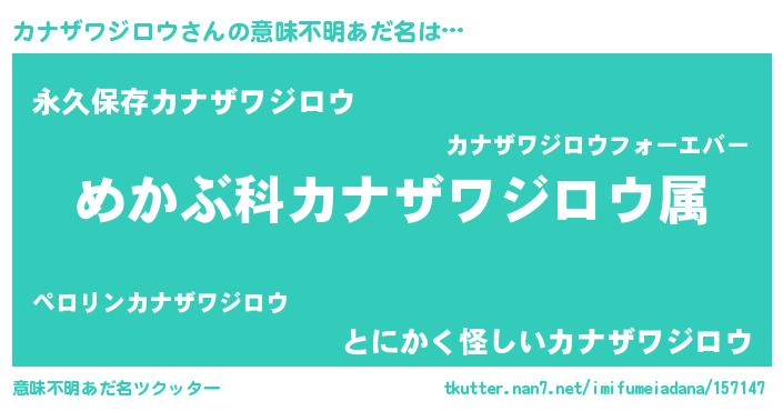 | ヘコむあだ名 | 『カナザワジロウ(爆)』『カナぷりん』 |