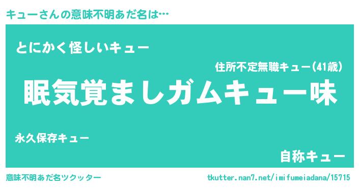 | ヒーロー風カッコイイあだ名 | 『天空の使者キュー』『魔戒騎士キュ』 |