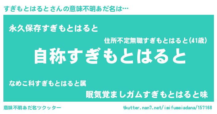 | 女子向けラノベタイトル風あだ名 | 『すぎもとはるとストレイドッグス』 |