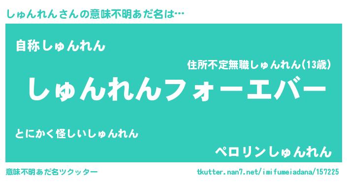 | ファンタジー風あだ名 | 『エターナルシュンレンー』『ゼシュトゥ』 |