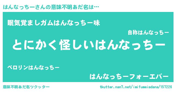 | ポケモン風あだ名 | 『ヒハンナッチー』『ハックウザ』 |