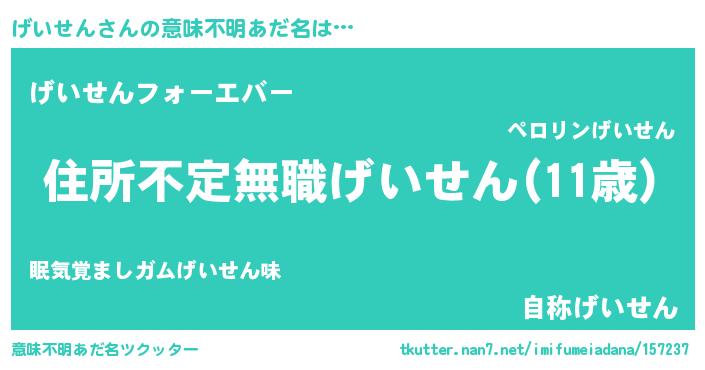 | ヘコむあだ名 | 『なまこ酢』『げいもー』『げいお』 |