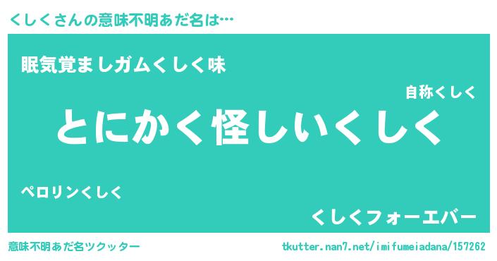 | 女子向けラノベタイトル風あだ名 | 『くしく様がみてる』『死神くしくの再婚』 |