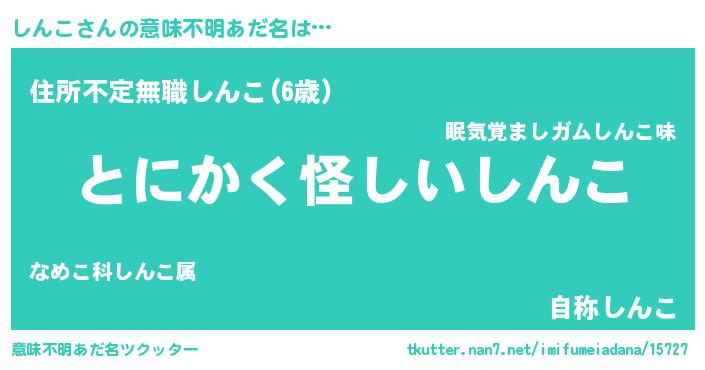 | 男性向けラノベタイトル風あだ名 | 『しんこの嫁は女の子じゃないと思った?』 |