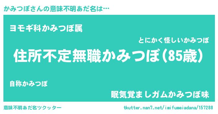 | 男性向けラノベタイトル風あだ名 | 『この素晴らしい世界にかみつぼを!』 |
