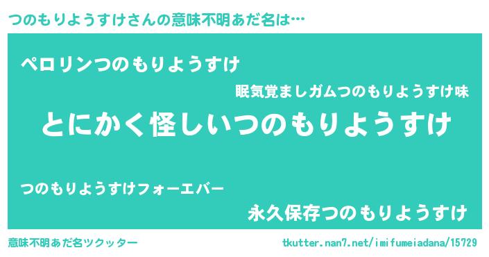 | 男性向けラノベタイトル風あだ名 | 『つのもりようすけの嫁は女の子じゃないと思った?』 |