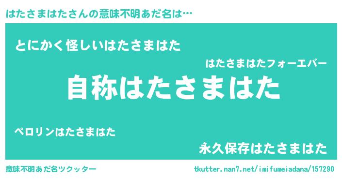 | ポケモン風あだ名 | 『ハタセウス』『ヒハタサマハタ』 |