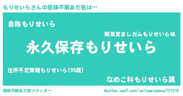 | 男性向けラノベタイトル風あだ名 | 『もりせいらに滅ぼされるだけの簡単なお仕事です』 |
