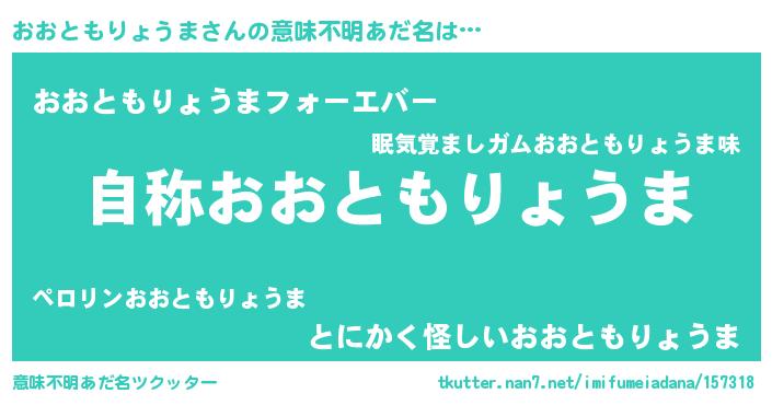| 女子向けラノベタイトル風あだ名 | 『おおともりょうまなんてお断りですっ。』 |