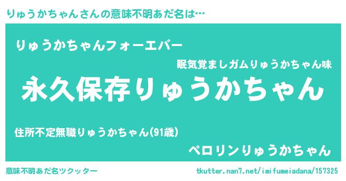 | 男性向けラノベタイトル風あだ名 | 『りゅうかちゃんという概念が存在しない退屈な世界 』 |