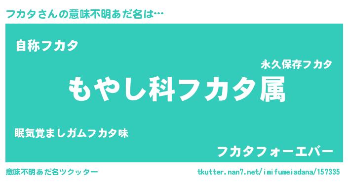 | ヒーロー風カッコイイあだ名 | 『最強戦士フカタ』『ウルトラフカタマン』 |