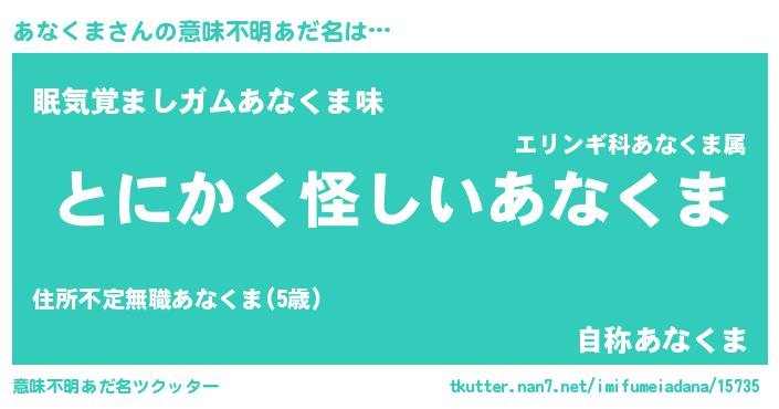 | 胡散臭い通販商品みたいなあだ名 | 『信頼と実績のサプリメント…その名も「あなくま」』 |