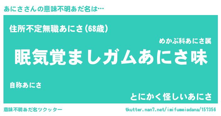 | ヒーロー風カッコイイあだ名 | 『慈愛の使者あにさ』『仮面アニダー』 |