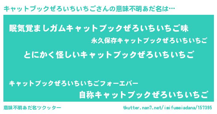 | 料理風あだ名 | 『キャットブックぜろいちいちごの豆乳スープ』 |