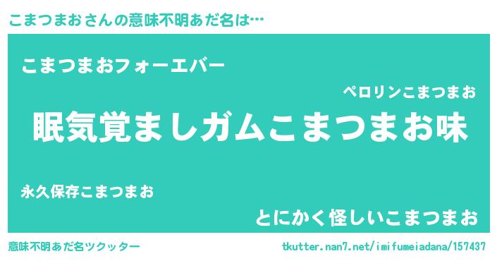| 男性向けラノベタイトル風あだ名 | 『おまえをオタクにしてやるから、俺をこまつまおにしてくれ! 』 |