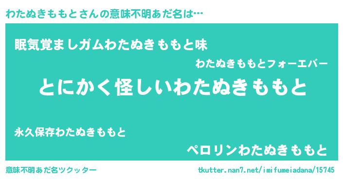 | 男性向けラノベタイトル風あだ名 | 『うちのわたぬきももとが世界を掌握している!』 |