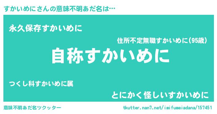 | 男性向けラノベタイトル風あだ名 | 『Re:すかいめにから始める異世界生活』 |
