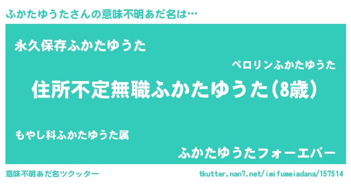 | ヘコむあだ名 | 『ふかたゆうた(笑)』『豆乳』 |