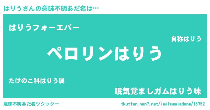 | 男性向けラノベタイトル風あだ名 | 『はりうの憂鬱』『魔法科高校のはりう』 |