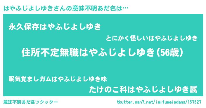 | 伝説のあだ名 | 『古より伝わる暗殺者はやふじよしゆき』 |