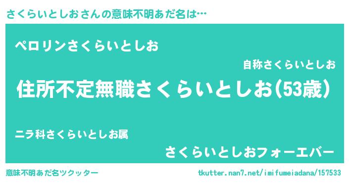| 料理風あだ名 | 『さくらいとしおのカルパッチョ風』 |