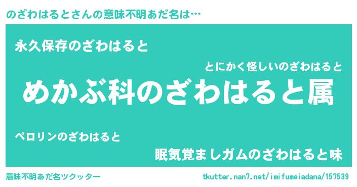 | 欧米人風あだ名 | 『トリンドルのざわはると』 |
