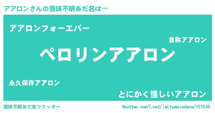 | ファンタジー風あだ名 | 『アアフェル』『エターナルアアロンー』 |