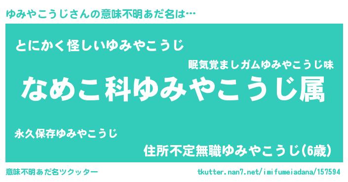 | 男性向けラノベタイトル風あだ名 | 『転生したらゆみやこうじだった件』 |