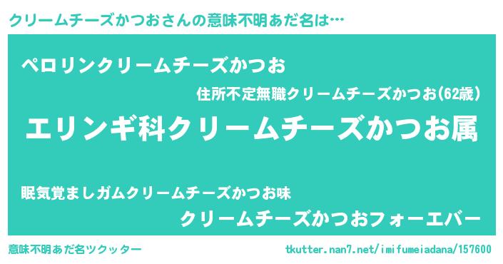 | ヒーロー風カッコイイあだ名 | 『スーパークリームチーズカツオ』 |